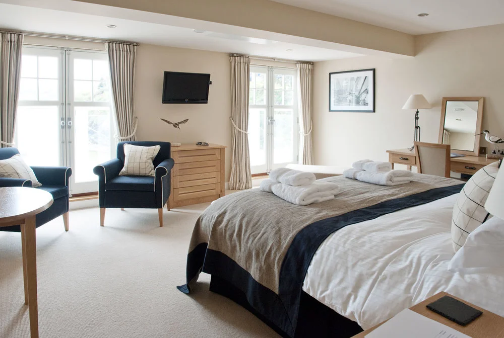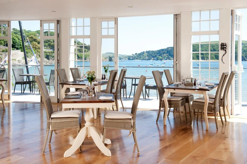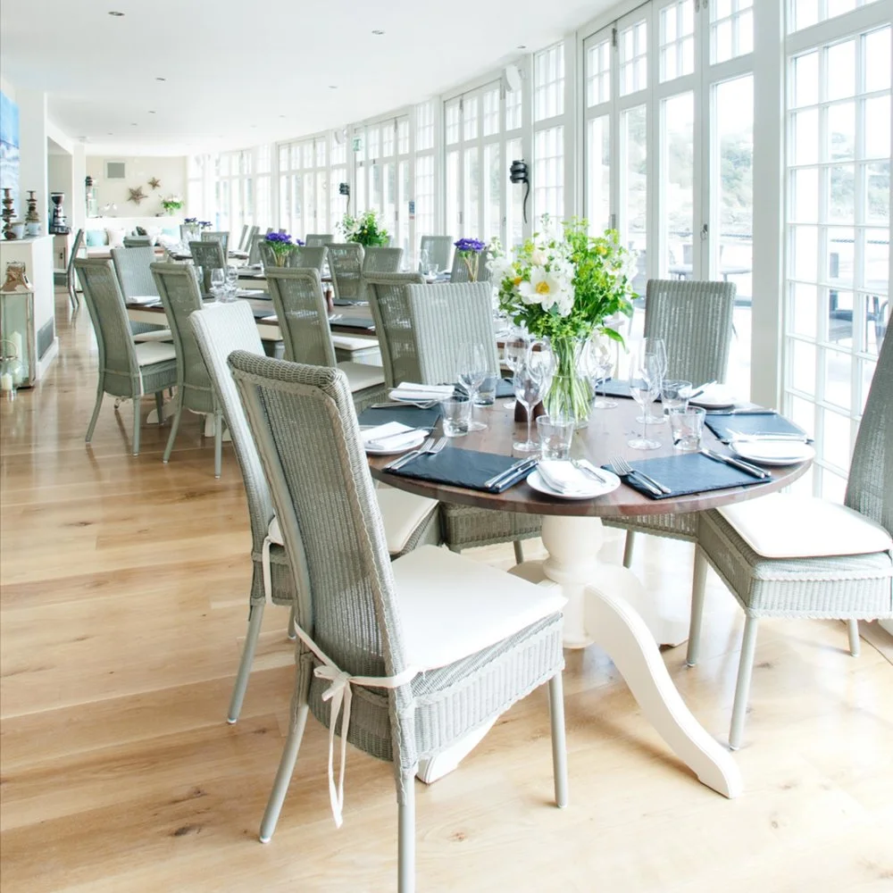 South Sands Hotel & Restaurant in Salcombe sits on a beautiful sandy beach on the Salcombe estuary. Lorna shots show the hotels ambience and lovely coastal themed interiors, highlighting the fabulous views from this lovely beachside hotel.